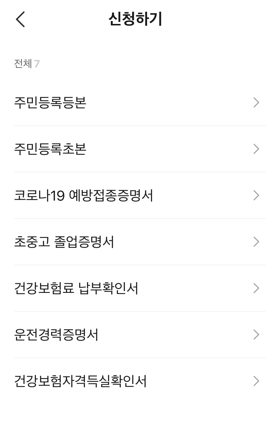 신청가능한 전자증명서
