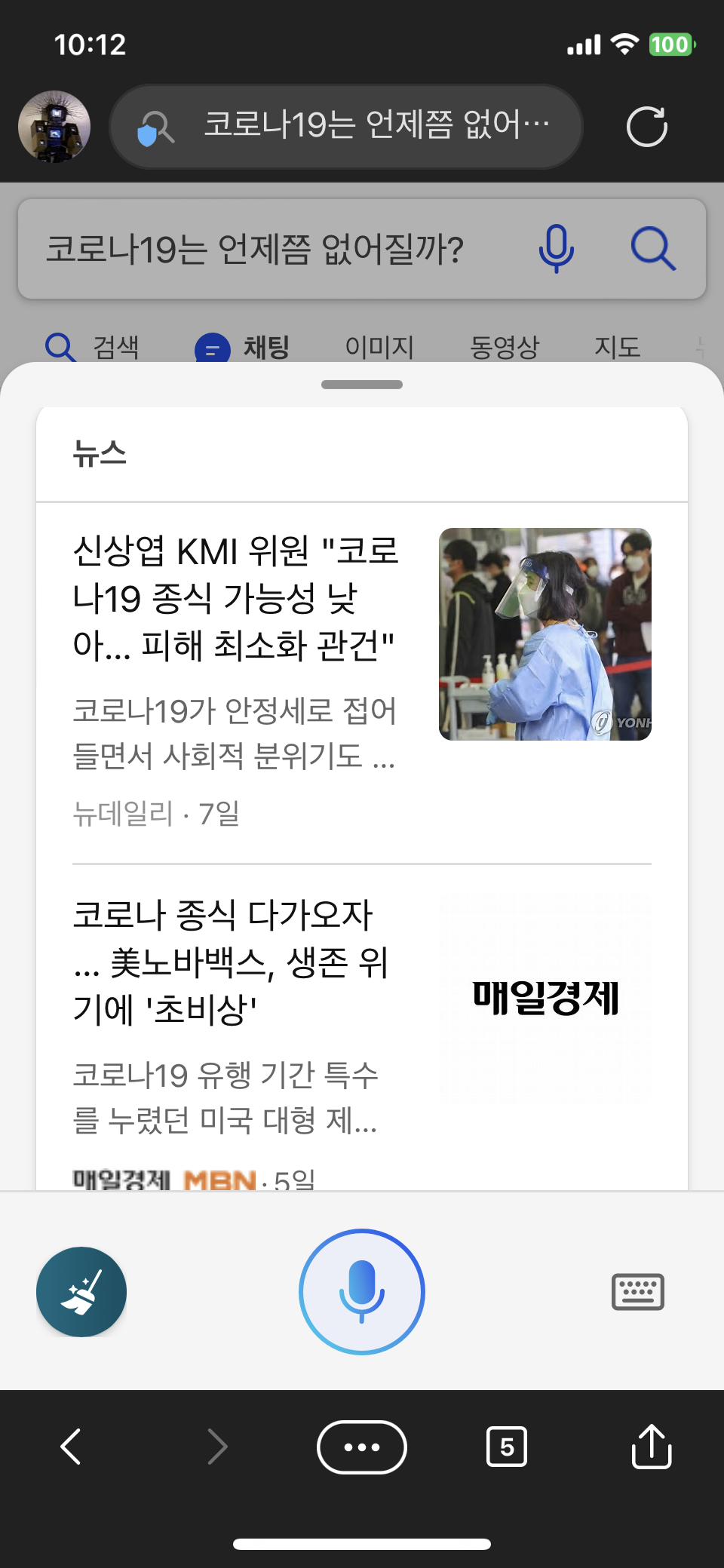 검색 메뉴옆 “채팅” 메뉴에서 대화