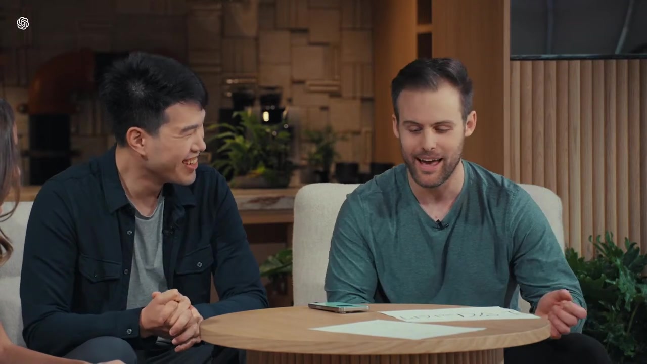 - 연구 책임자인 Mark Chen과 Barrett Zoph가 진행하는 실시간 대화 연설을 보여주는 라이브 데모입니다.