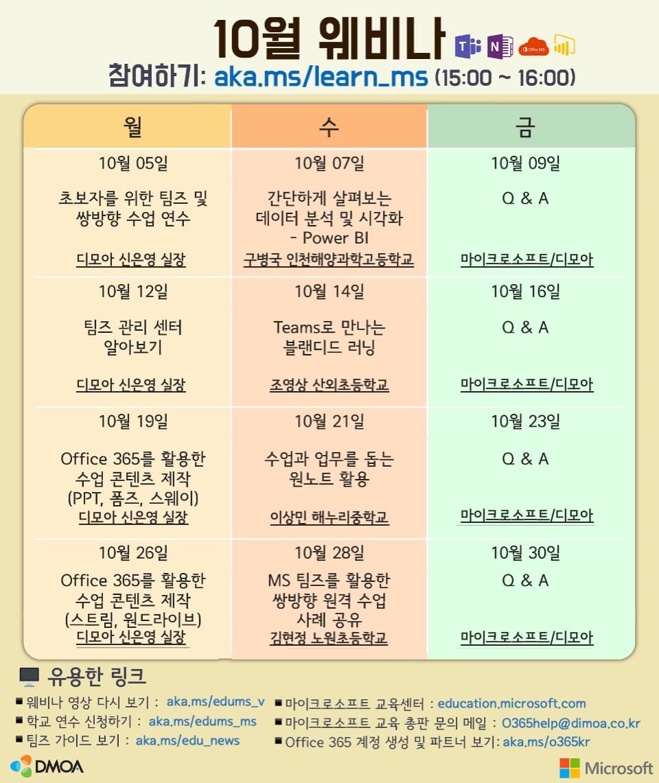 한국 마이크로소프트 교육팀과 디모아가 함께하는10월 웨비나가