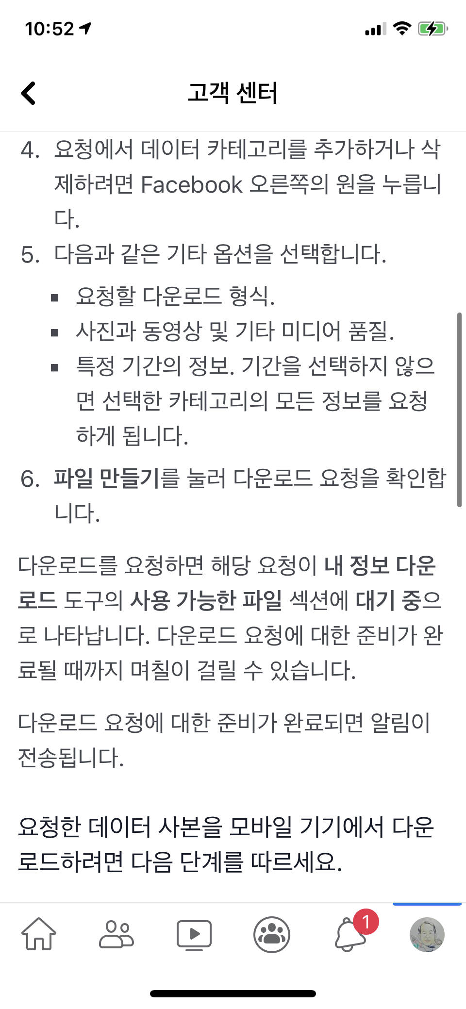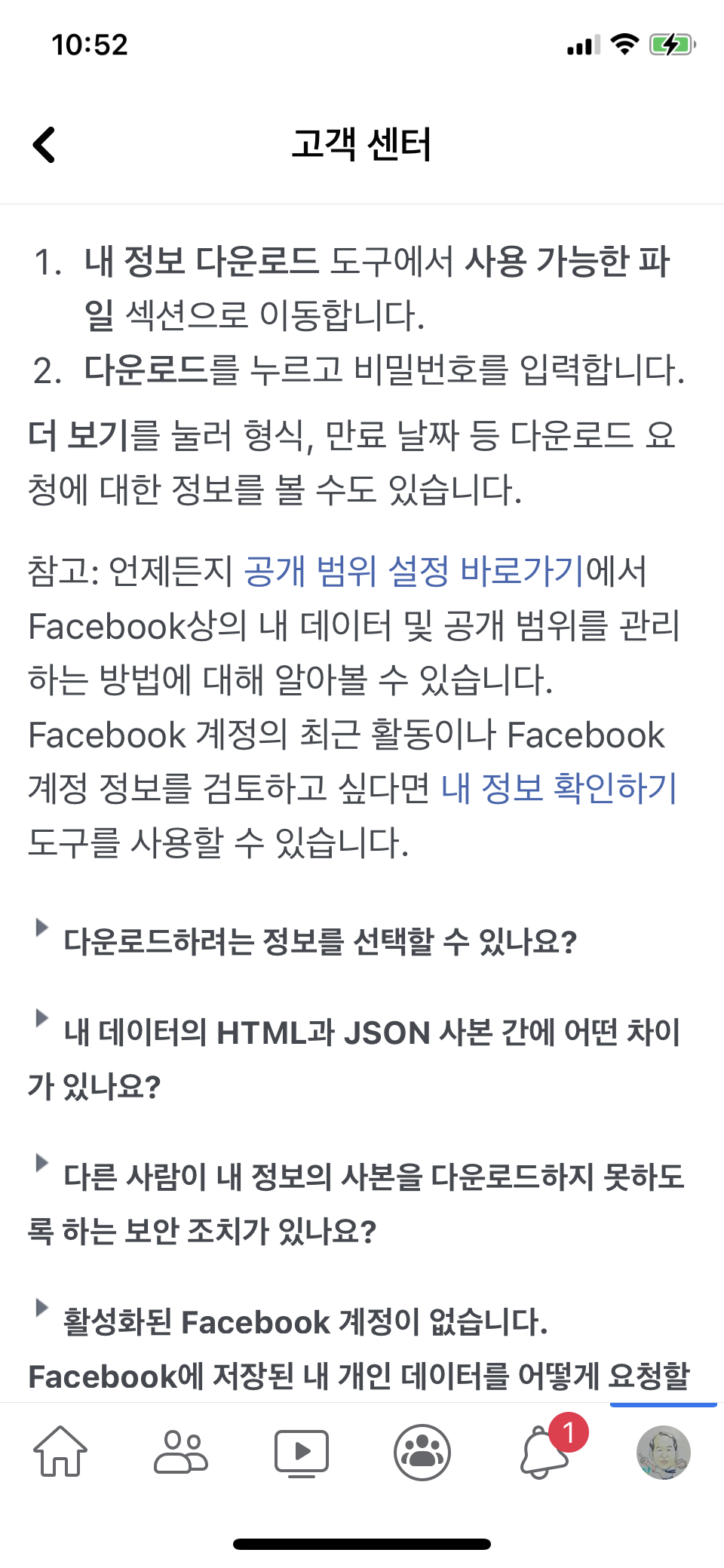Facebook에서 내 정보 사본을 다운로드하려면?