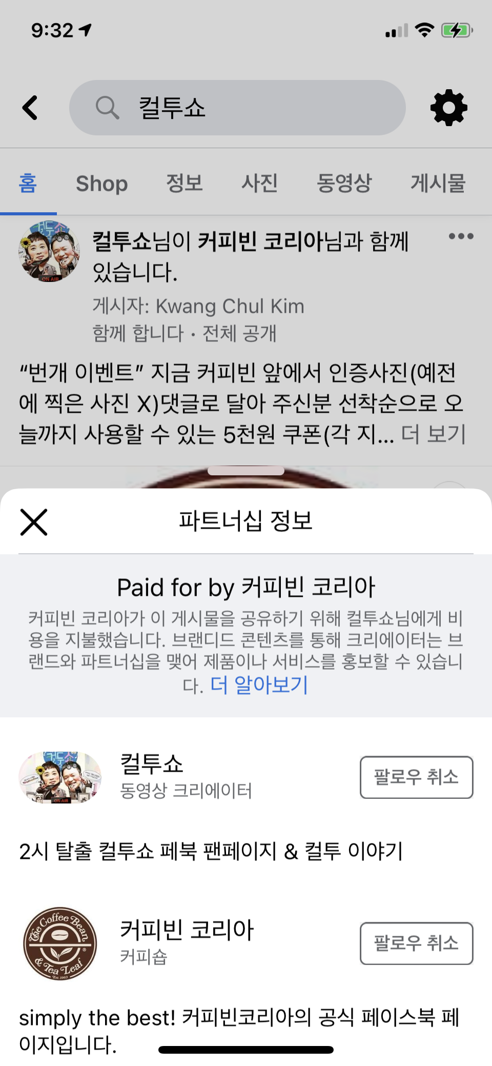 사례> 페북 컬투쇼에 커피 브랜드 광고 콜라보.^^