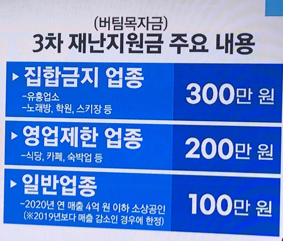 정부는 오늘 오전 청와대에서 문재인 대통령 주재로 국무회의를 열고 3차 재난지원금 지출계획안을 의결했습니다. 정부는 이번 지출안을 통해 580만명에게 모두 9조3천억원의 자금을 지...