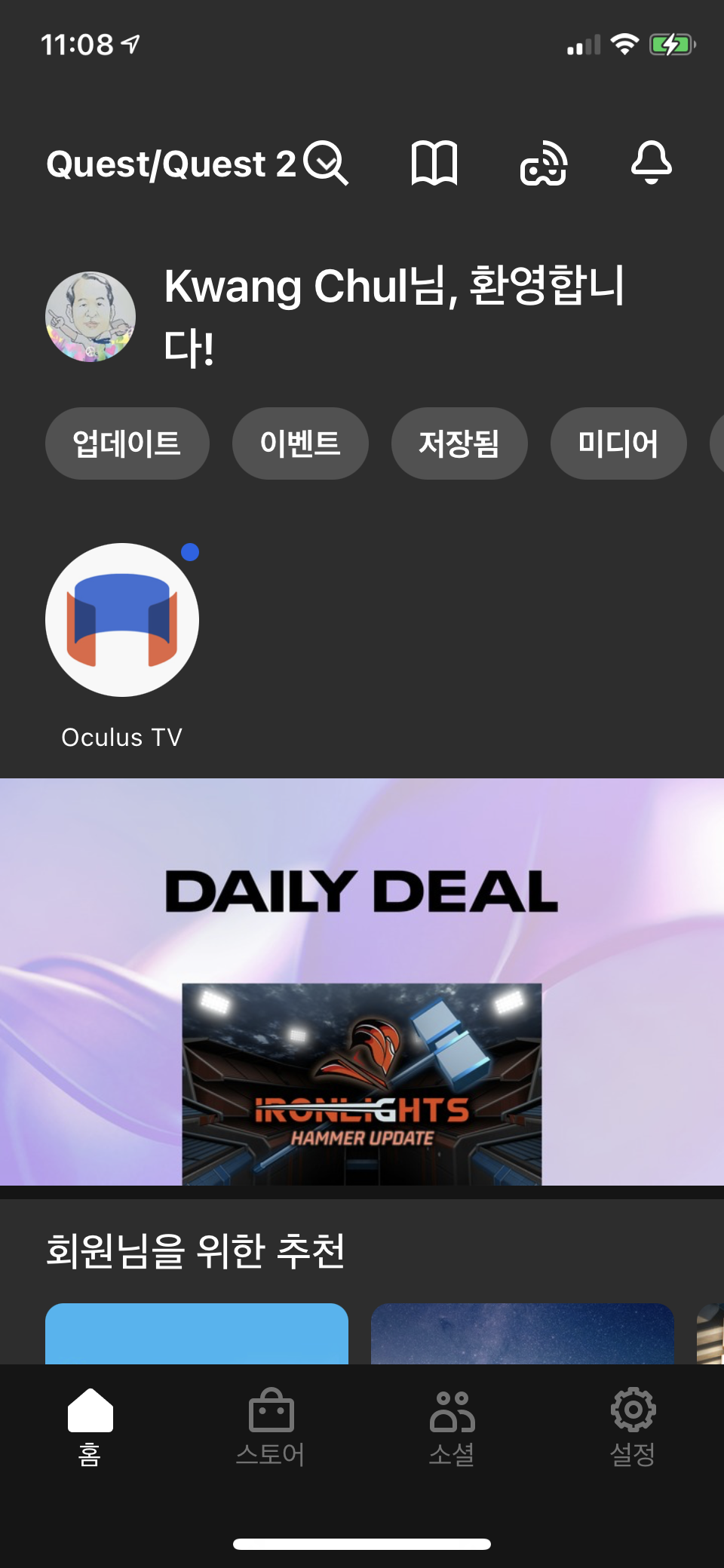 휴대폰에서 Oculus 앱을 엽니다.